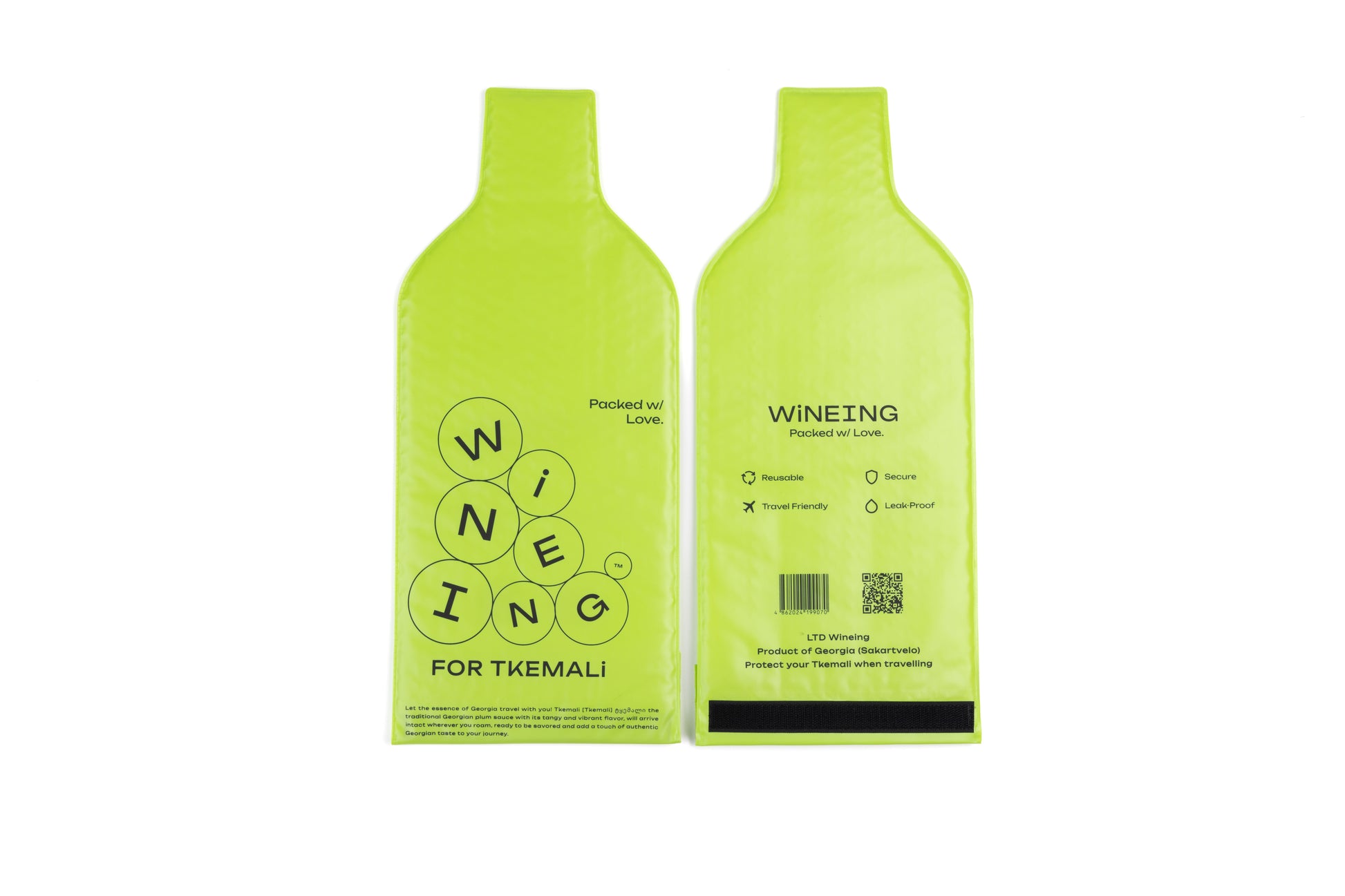 მოსახრეხებელი პროდუქტი ღვინის, შამპანურის, ლუდის, სპირტიანი სასმელების, კახური ან ზეითუნის ზეთის, ტყემლის, სუნამოებისა და სხვა მსხვრევადი ბოთლების (1,5 ლ-მდე) ტრანსპორტირებისათვის. სამოგზაურო აქსესუარი და მშვენიერი საჩუქარი. დიზაინი შექმნილია საქართველოში.